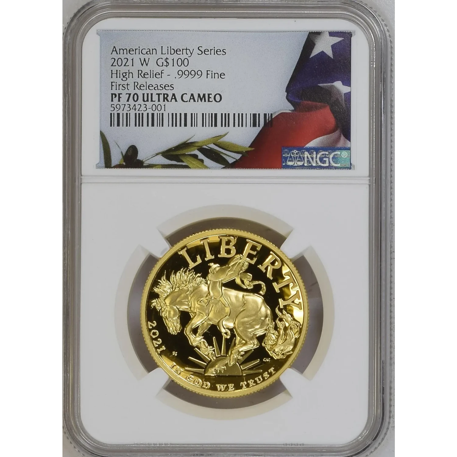 2021-W American Liberty Gold NGC PF-70 FIRST RELEASES HIGH RELIEF BRONCO