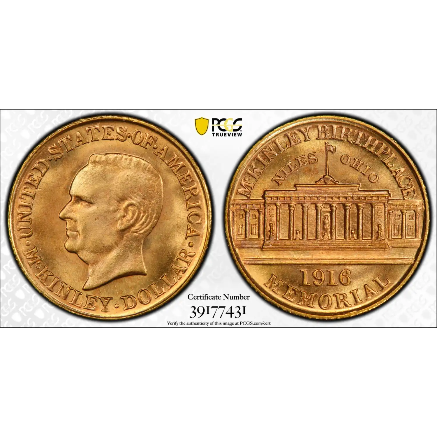 1916 Classic Commemorative McKinley Memorial PCGS MS-66 McKinley