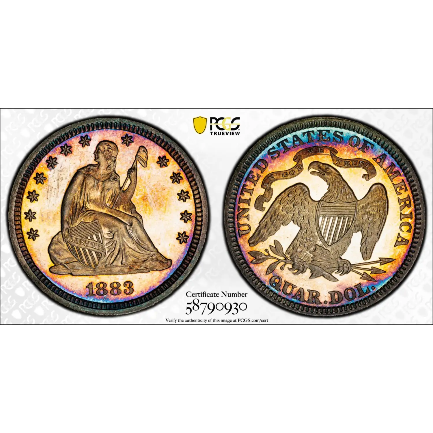 1883 Seated Liberty Quarter PCGS PR-64+ BEAUTIFUL TONING