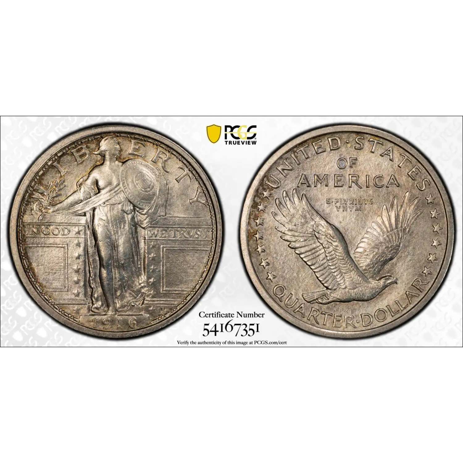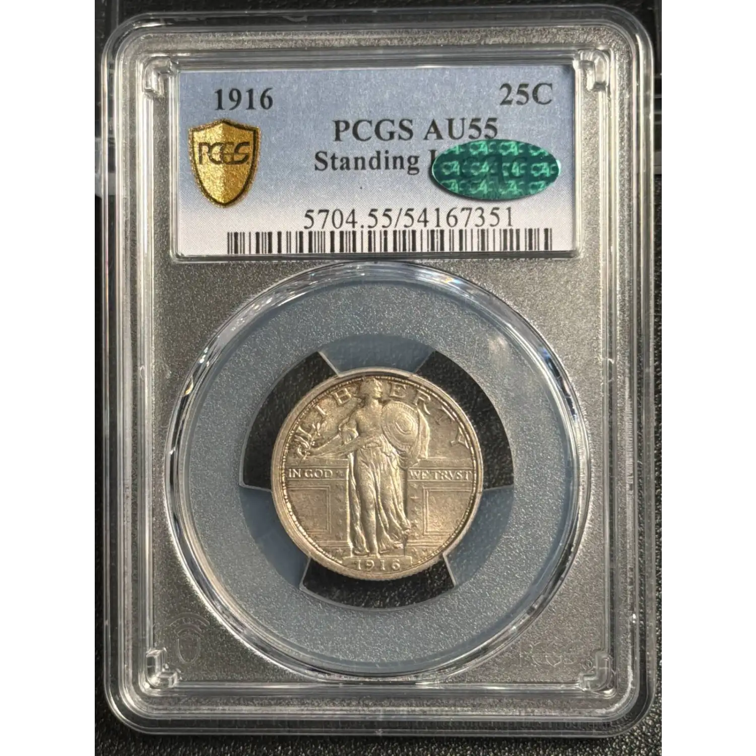 1916 Quarter Dollars Standing Liberty Quarter PCGS AU-55 Standing Liberty CAC