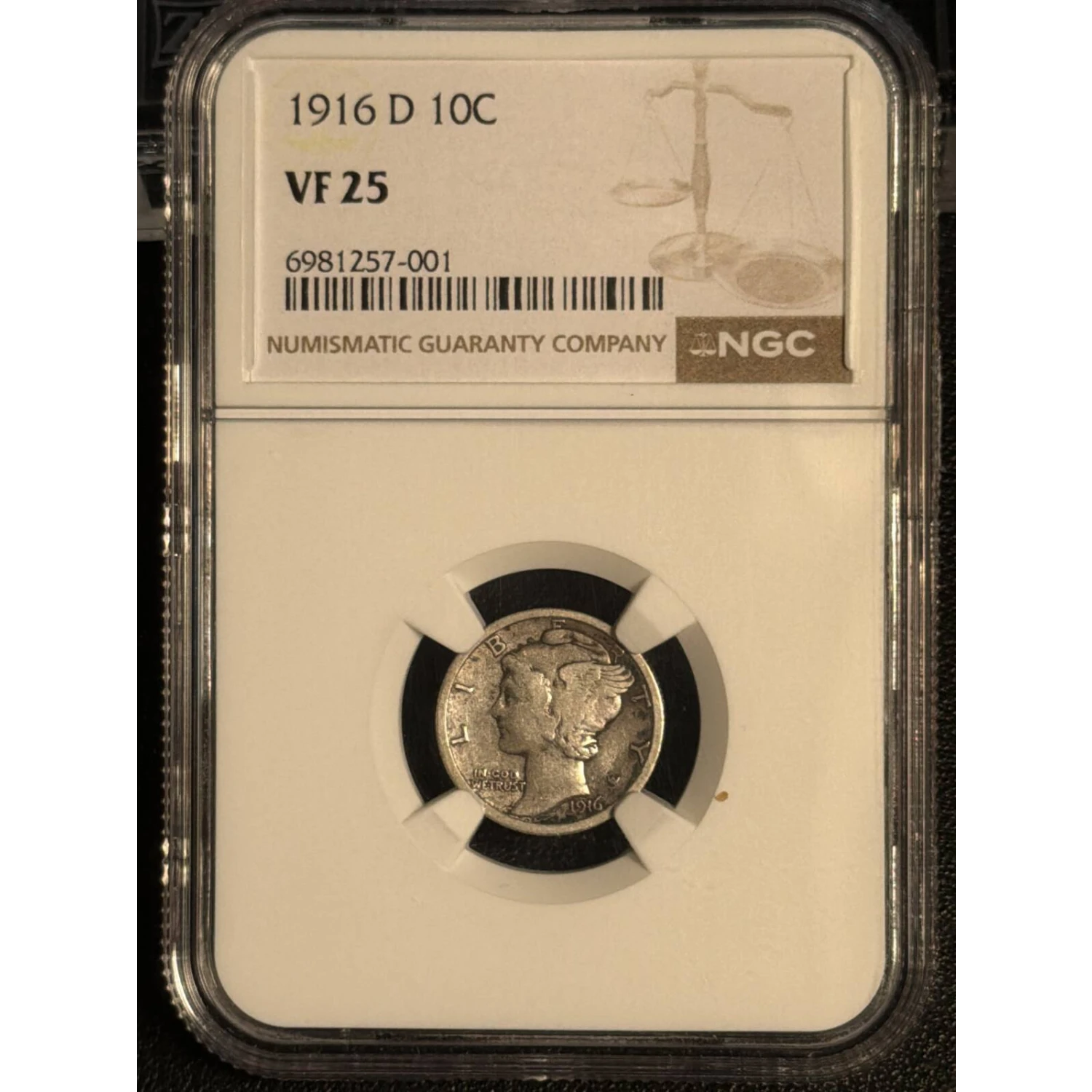 1916-D Mercury Dime NGC VF-25 PQ HAS LUSTER