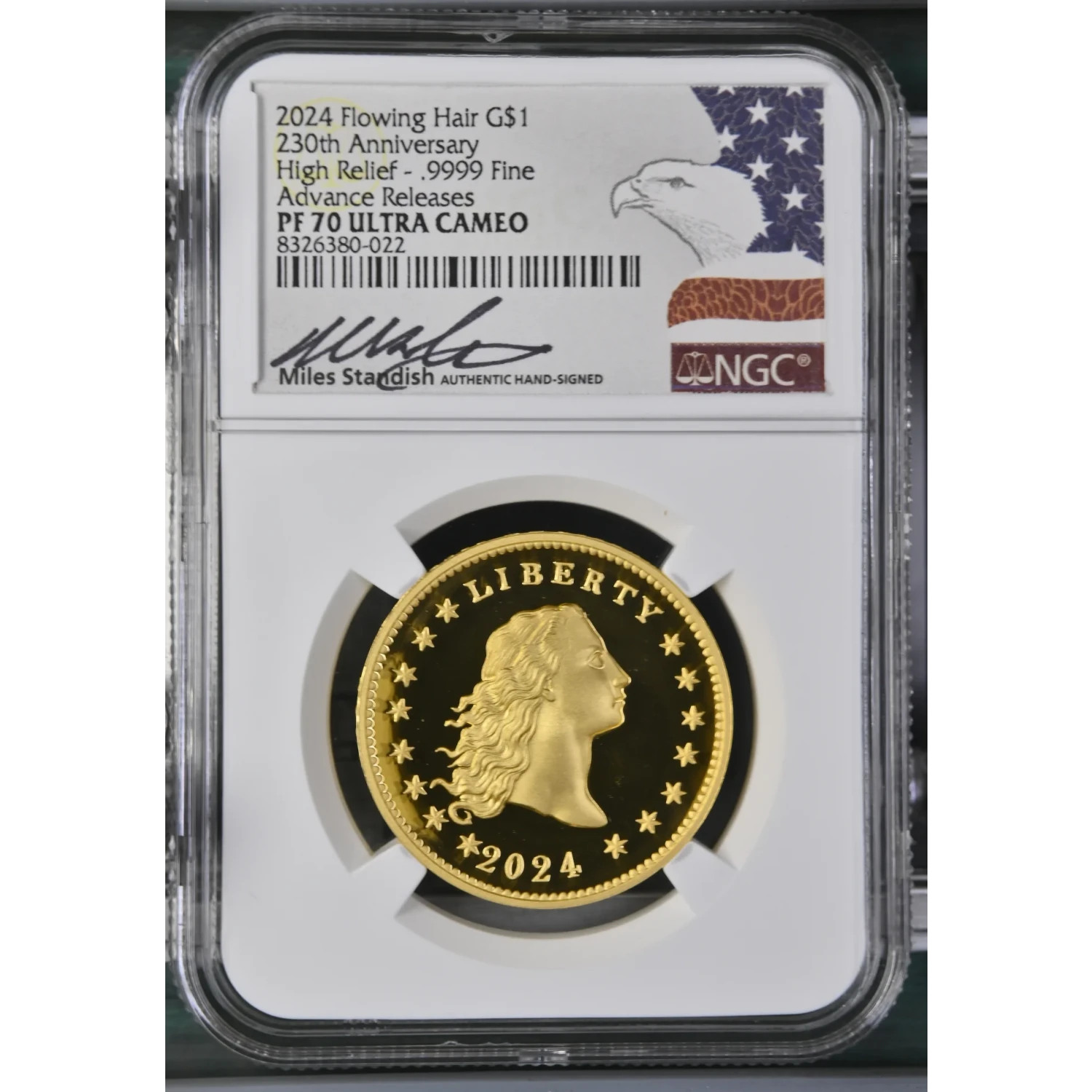 2024 Gold Flowing Hair Dollar NGC PF-70 ADVANCED RELEASES HIGH RELIEF