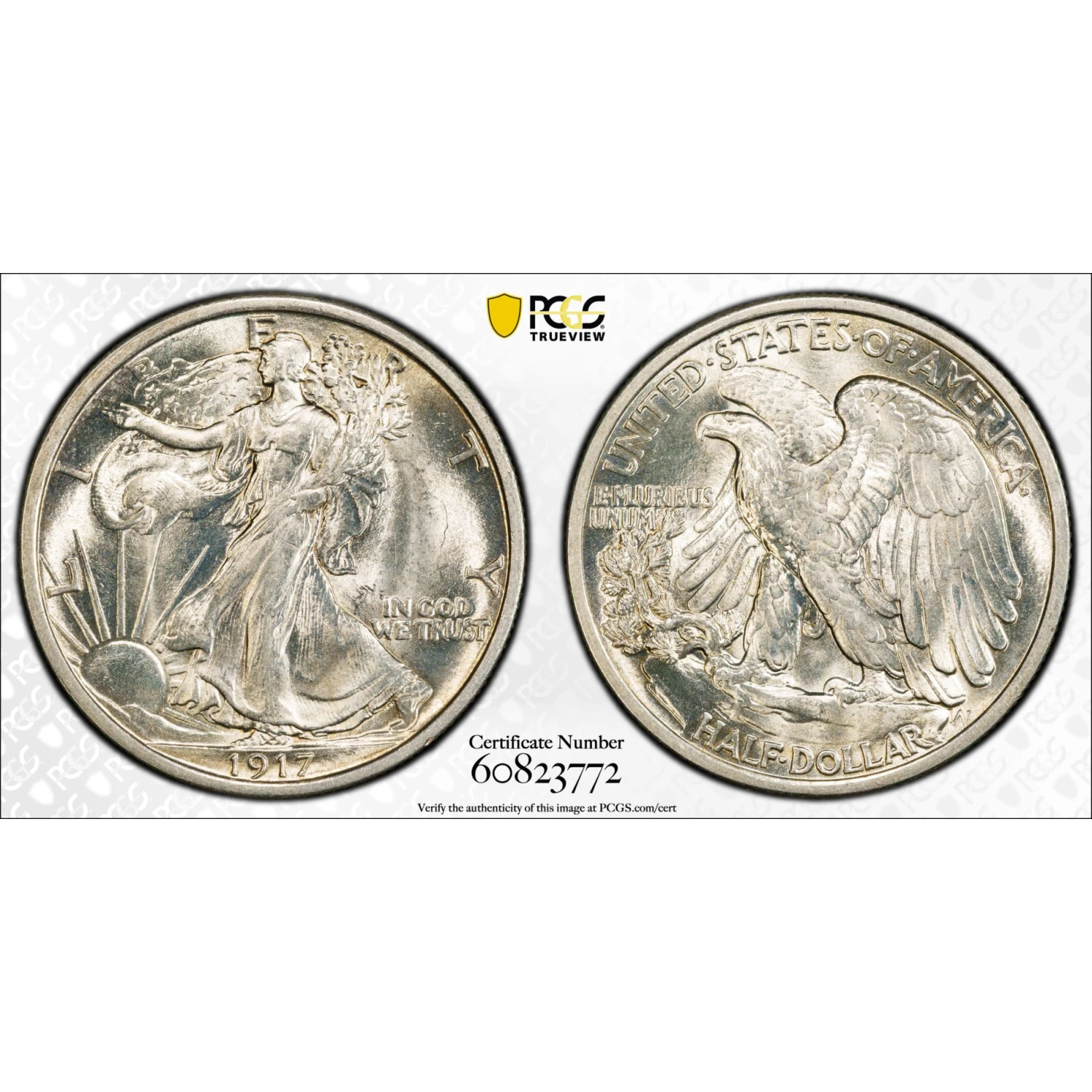 1917 Walking Liberty Half Dollar PCGS MS-62 PQ+