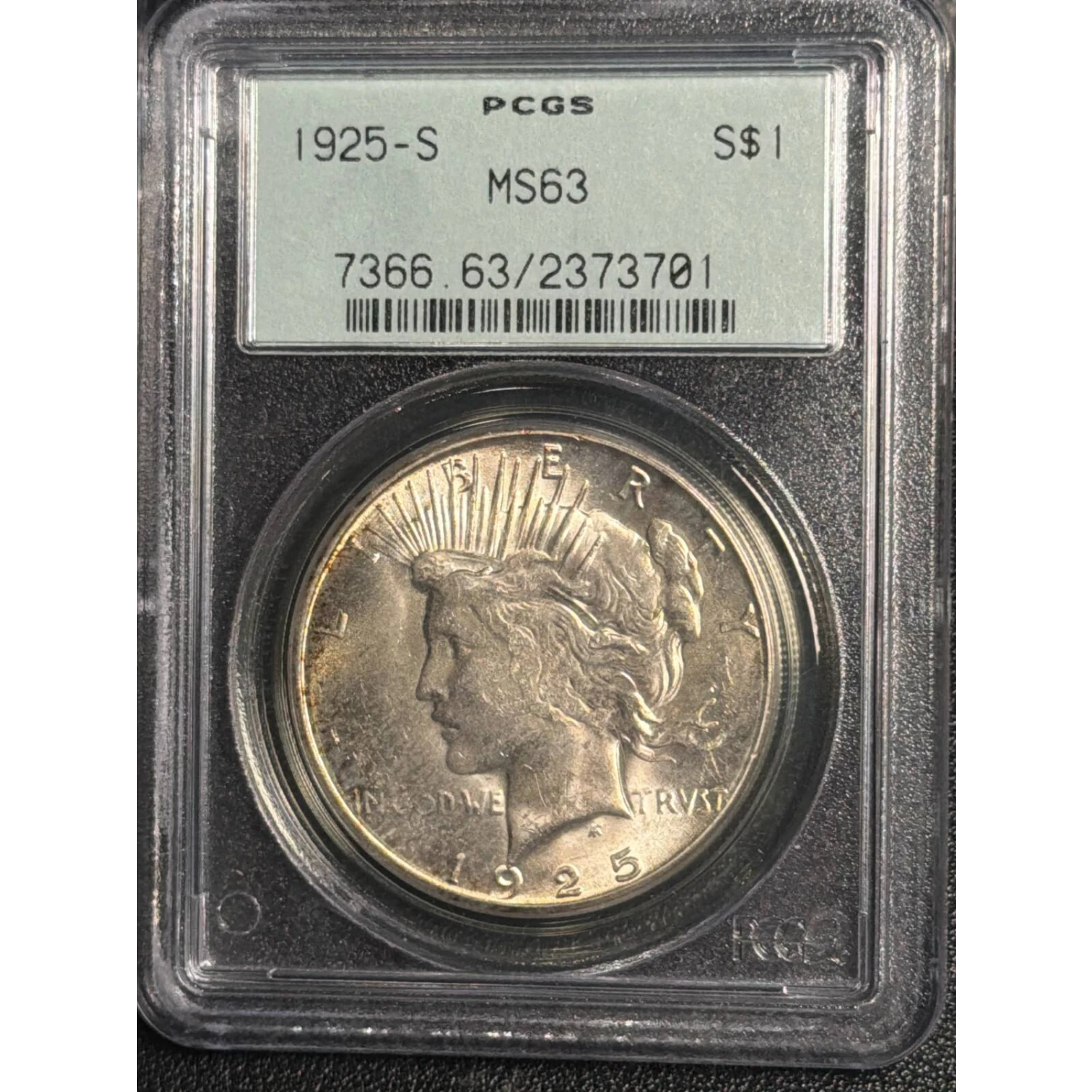 1925-S Peace Silver Dollar PCGS MS-63 OGH PQ+ CAC